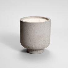 Deze betonnen potten met kaars werden handgemaakt in het atelier van ZOAconcept in Polen.